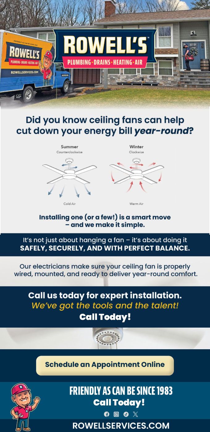 "Friendly As Can Be Since 1983!" When you need help with your plumbing, drains, heating, cooling or electrical in New Hampshire, you can always rely on Rowell's Services! Call us now or book online!