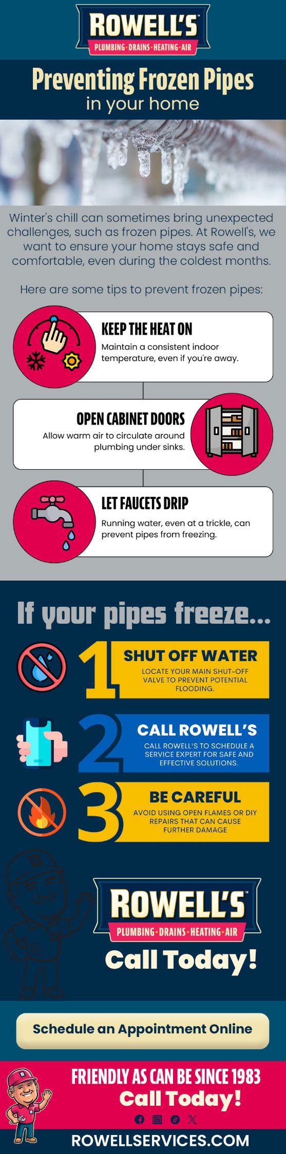 Winter's chill can sometimes bring unexpected challenges, such as frozen pipes. At Rowell's, we want to ensure your home stays safe and comfortable, even during the coldest months.