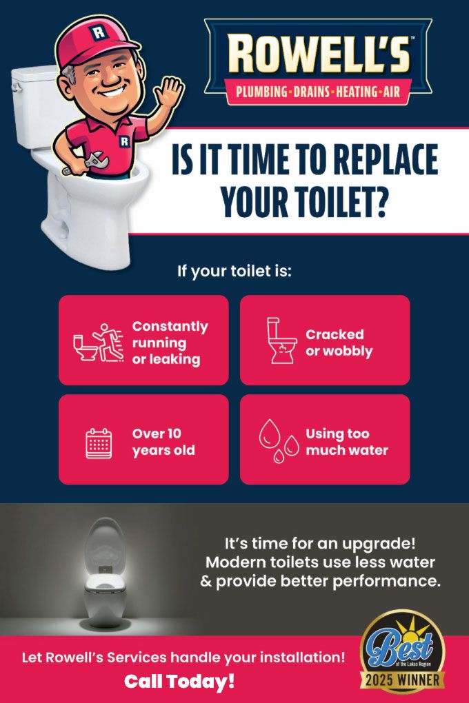 If your toilet is: Constantly running or leaking, over 10 years old, cracked or wobbly, using too much water. It's time for an upgrade! Modern toilets use less water & provide better performance.