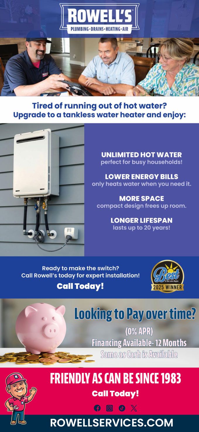 Tired of running out of hot water? Upgrade to a tankless water heater and enjoy